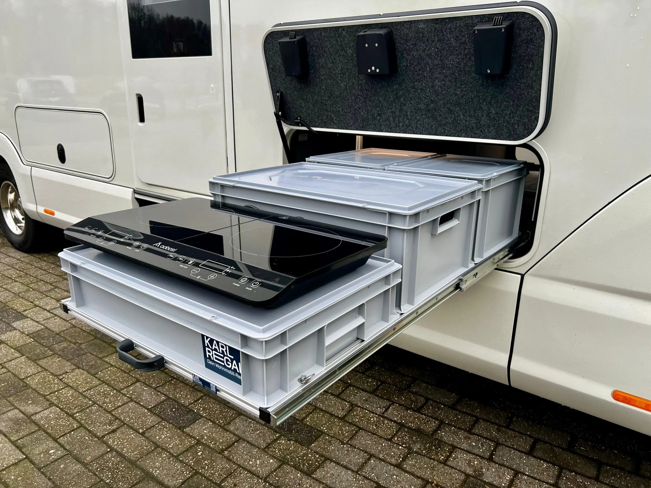 • Nein, wir sind selbst “geräuschempfindlich”. Bei der Entwicklung hatten wir Stille immer im Fokus. Besonders unter Pössl- und  Kastenwagen-Fahrern ein wichtiges Kriterium, denn das Regal ist während der Fahrt zugänglich.