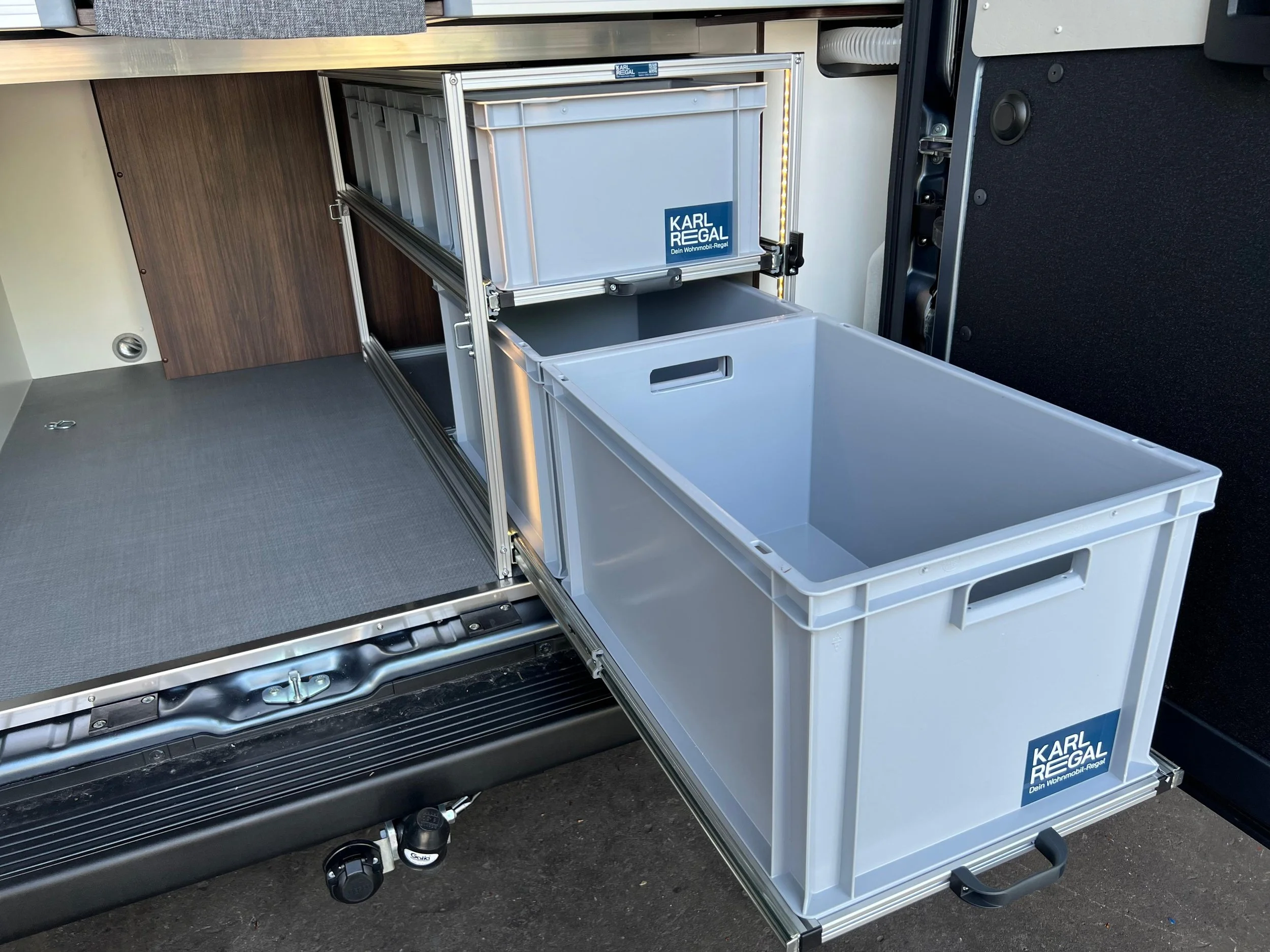 Der Klügere rüstet nach: Karl-Regal bietet dir neben maßgefertigten Regalsystemen für dein Wohnmobil auch praktisches Zubehör. So sparst du nicht nur jede Menge Platz, sondern erhöhst auch die Qualität deiner Reise